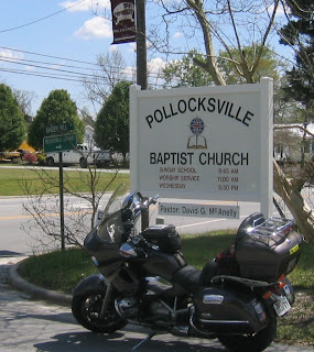 After I took this picture (note minister's name), a man whipped his car off the road, into the parking lot behind it and drove over the grass, doubling back, and offered to take a picture with me in it.